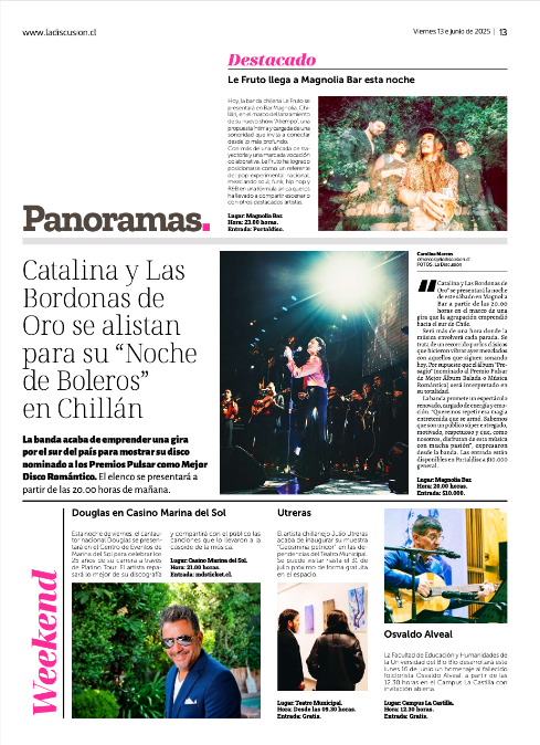 «Catalina y Las Bordonas de Oro se alistan para su “Noche de Boleros” en Chillán»